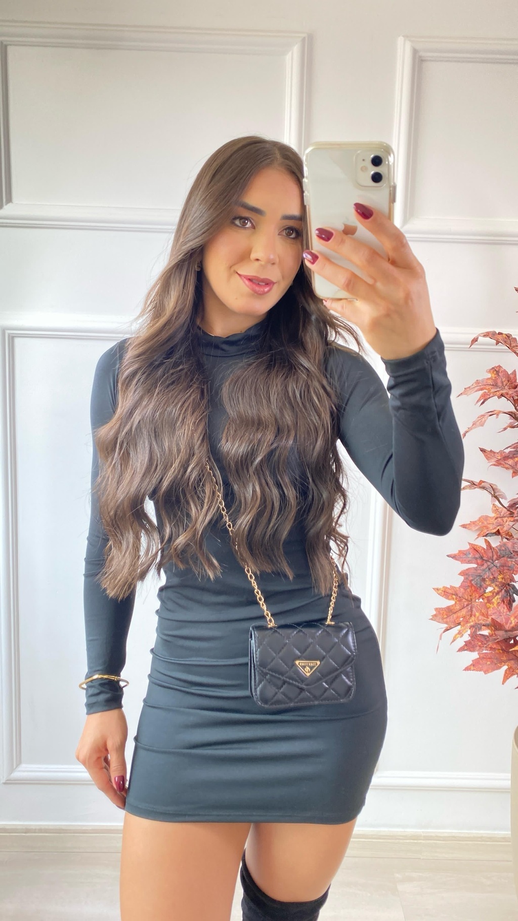 VESTIDO CANELADO CURTO MANGA LONGA TAYLA